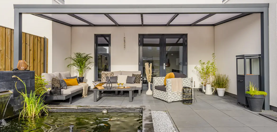 Nasze zadaszenia cechuje wyjątkowa estetyka. Proste, nowoczesne linie oraz oszczędne kolory sprawiają, że osłony doskonale wpasują się w każdą aranżację tarasu. Ponadto przeźroczyste lub mleczne płyty poliwęglanowe pozwalają na swobodne wprowadzenie światła do wnętrza tarasu, jednocześnie chroniąc domowników i ich gości przed słońcem oraz deszczem.